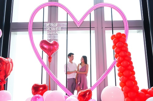 Couples can enjoy photo moments against colorful romance-inspired balloon and LED light decorations on the 74th floor indoor observation deck before sending a souvenir post-card from Bangkok’s highest postbox.