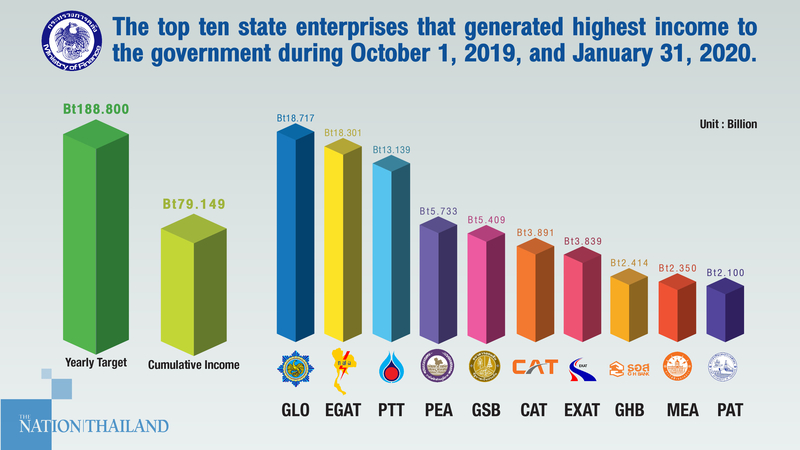 The top ten state enterprises generating the highest income to the government during October 1, 2019, and January 31, 2020, are: