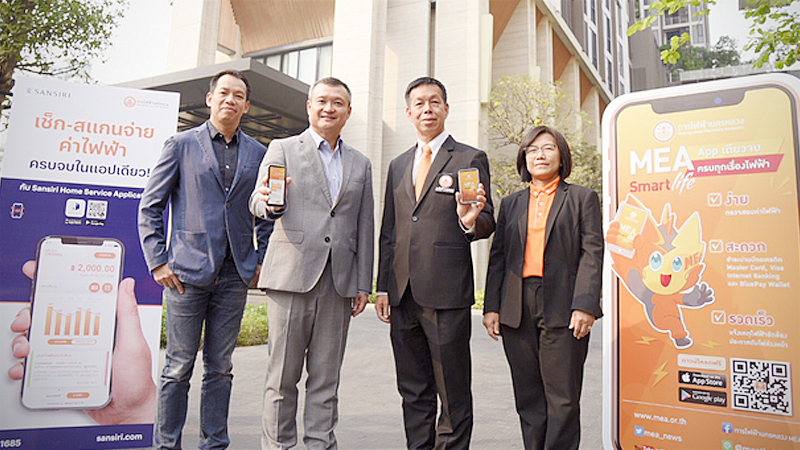 On Wednesday (January 22), MEA deputy governor Wanchai Jiarawattanawi and Uthai Uthaisaengsuk, chief operating officer of Sansiri Pcl, launched the “MEA Smart Life Platform” to improve convenience at Sansiri’s property projects starting with the The Line Phahon-Pradipat condominium.