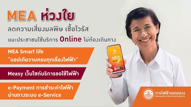 Customers who have questions or require assistance can contact MEA staff via several channels without having to leave their houses, such as Facebook: Metropolitan Electricity Authority; Line application: @meathailand; Twitter: @mea_news; or contact MEA Call Center at 1130, which is available 24/7.