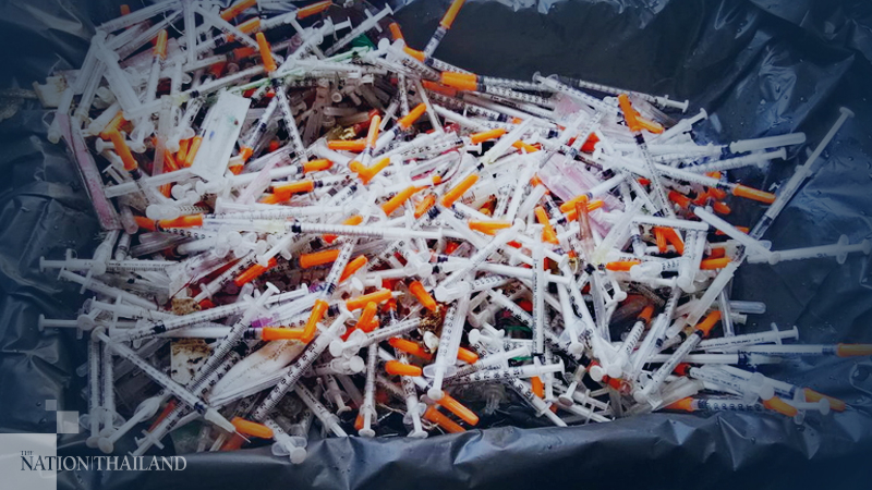Apirat Kanyutanon, the province’s public health doctor, reached the beach. He inspected and collected those syringes and tubes back to Chong Samae San subdistrict hospital.