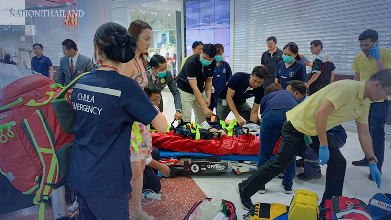 CentralWorld quickly transferred the injured boy to a nearby hospital. The store clarified that the boy had fallen in the central area from the third level, not the fifth level, based on a witness account. The student is conscious, and is awaiting a brain x-ray scan result.