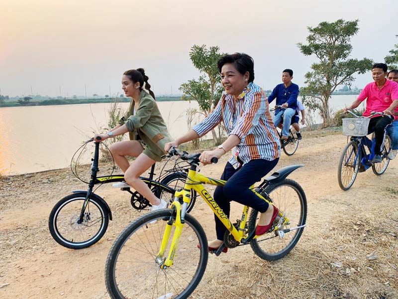 ‘น้ำหวาน’ สุขใจ ปั่นจักรยานเที่ยวบึงกระจับใหญ่ ชมตะวันตกดิน