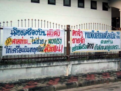 Srisuwan Janya, president of the Stop Global Warming Association, said on Sunday that his association had received a lot of complaints from residents living in the north and south of Suvarnabhumi Airport about the noise levels since 2004, but until now the residents have not received compensation or any measures to alleviate their problems caused by pollution, noise and vibration when planes take off and land at the airport. He said the airport operations had affected their daily life and health.