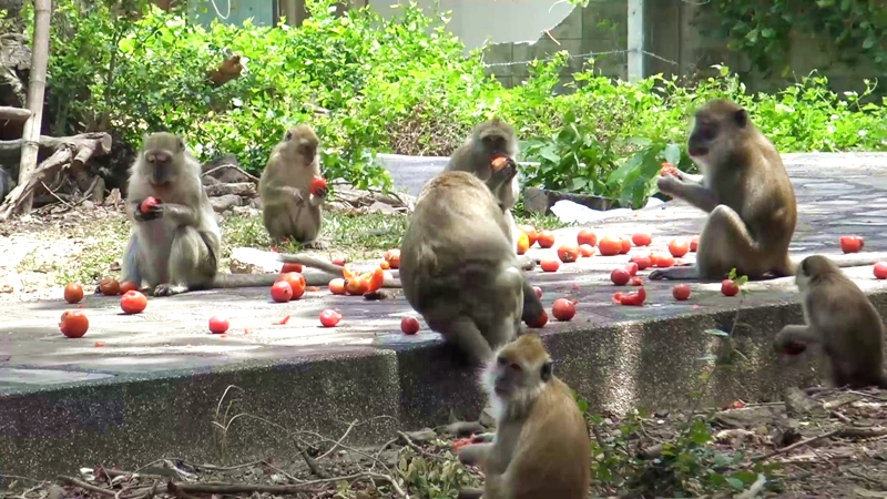 After seeing the monkeys starve, local fruit vendors have started giving them watermelon and tomatoes. Thai tourists meanwhile are giving them corn.