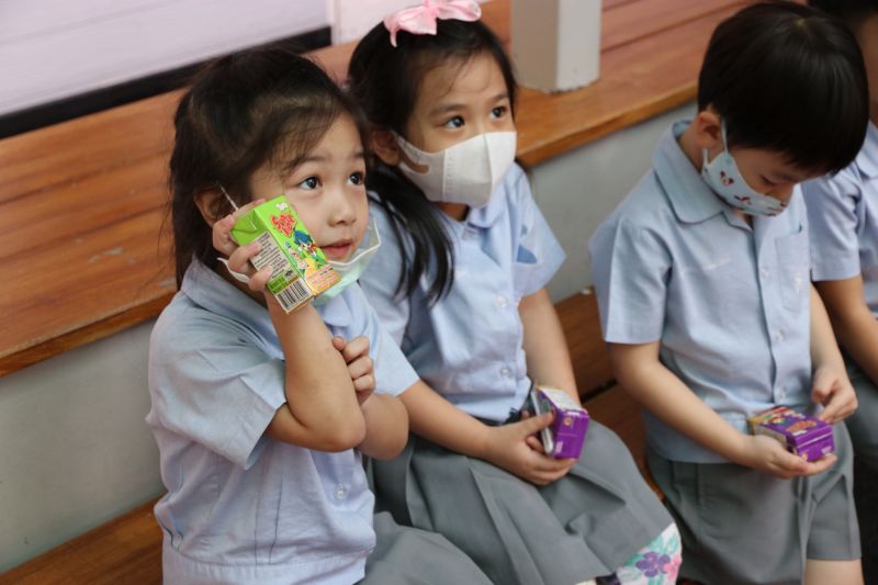 กฤศณัฏฐ์ กิจวิทยศักดิ์ ผู้จัดการฝ่ายผลิตภัณฑ์ และ พรทิพย์ ธำรงค์สกุลศิริ Senior Specialist – Marketingจากบริษัททิปโก้ เอฟแอนด์บี จำกัดเป็นตัวแทนผู้บริหารมอบผลิตภัณฑ์สำหรับเด็กทิปโก้ ซุปเปอร์คิด น้ำผลไม้แท้ 100%กว่า 4,500 กล่อง ผลิตภัณฑ์ที่อุดมไปด้วยวิตามินซีสูง คัดสรรและนำประโยชน์ที่ดีที่สุดของผักผลไม้ ให้เด็กๆ เติบโตมีร่างกายแข็งแรงในทุกๆวัน พร้อมกับเสริมสร้างภูมิคุ้มกันเพื่อป้องกันไม่ให้ป่วยง่าย โดยเฉพาะช่วงนี้มีฝุ่น PM 2.5 ค่อนข้างสูงไม่ดีต่อสุขภาพของเด็กๆโดยมีอาจารย์ศิรประภา อยู่สุข ผู้อำนวยการโรงเรียนเธียรประสิทธิ์ศาสตร์และ ผศ.ณัฐพร สุดดีรองผู้อำนวยการฝ่ายกิจการนักเรียน ที่โรงเรียนสาธิตจุฬาลงกรณ์มหาวิทยาลัย ฝ่ายประถมเป็นผู้รับมอบ