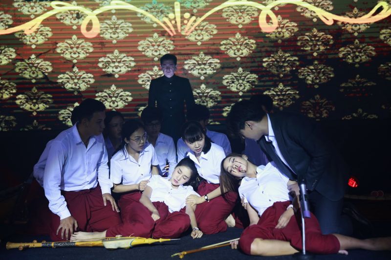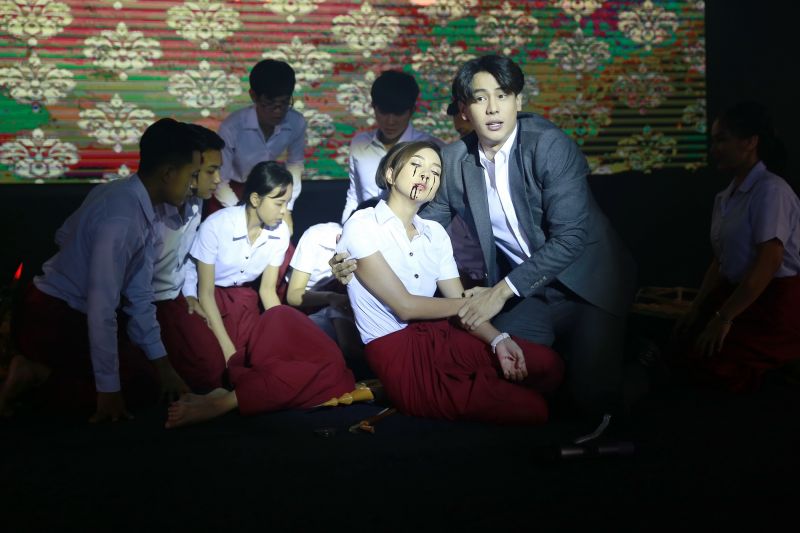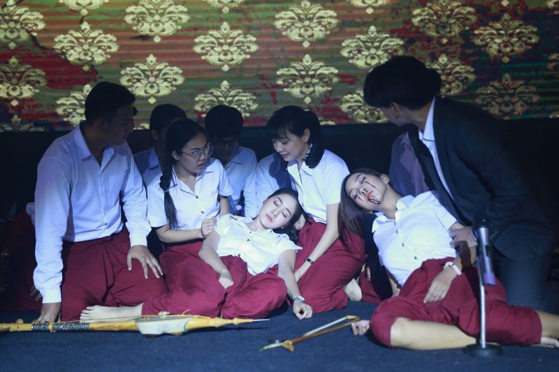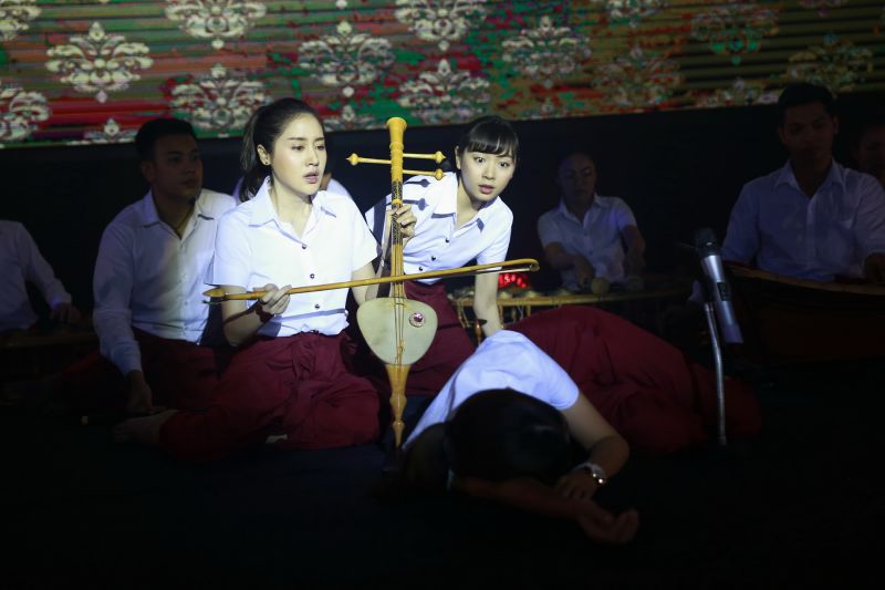 ฉากนี้เป็นตอนสำคัญของเรื่อง ที่ทุกคนตั้งใจซ้อมดนตรีกันมาก็เพื่อเล่นในงานประกวดดนตรีสังคีตศิลป์ ซึ่งยชญ์(แบงค์-อาทิตย์) ก็ยังยืนกรานจะใช้เพลง “ท่วมธรณี” ในการประกวด เพราะคิดว่าตนได้ล้างอาถรรพ์ได้สำเร็จแล้ว ซึ่งเมญากร (พิม-พิมประภา)นั้นไม่เห็นด้วย เพราะกลัวพวงแพร(ฝน-ปริดา) แต่ยชญ์ขอให้เชื่อใจเขา ระหว่างงานประกวดทีมของเมญากรกำลังเล่นดนตรีก ระหว่างงานประกวดทีมของเมญากรกำลังเล่นดนตรีกันอยู่บนเวที พวงแพรขับร้องเพลงท่วมธรณีไปจู่ๆเลือดก็ไหลออกจากตา แต่ก็ไม่สามารถหยุดร้องได้ เมญากรเห็นความผิดปกติแต่ตนก็ไม่สามารถที่จะหยุดสีซอไดส่วนยชญ์ก็พยายามจะขึ้นไปช่วยทั้งคู่แต่ได้แต่มองเพราะมีมือของครูเทิด(หนุ่ม-ศรราม) มาดึงไว้ไม่ให้ขยับตัว 2 สาวเล่นดนตรีไปจนจนล้มลงไปนอนหมดสติกับพื้น เพื่อนๆที่อยู่ด้านหลังที่เพิ่งเห็นต่างพากันตกใจ ยชญ์วิ่งเข้าประคองพวงแพรที่เลือดออกเต็มสองตา และก็ต้องตกใจด้วยว่า เมญากรหญิงที่เขารักก็หมดสติไปเช่นกัน