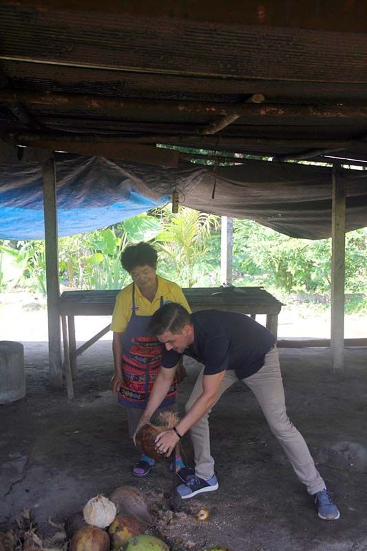 เริ่มต้นกันที่วิถีมะพร้าวชุมพรอย่าง “ชุมชนบางหมาก” ชุมชนที่มีวิถีชีวิตเกี่ยวกับมะพร้าว ซึ่งแดเนียลได้พบกับคุณแม่ปราณี ที่กำลังปอกมะพร้าว เพื่อทำขนมโบราณอย่าง “ขนมหัวล้าน” เรียนรู้วิธีการทำ และลองชิม ซึ่งรสชาติหวานมันกลมกล่อมอร่อยเหาะสุดๆ จากนั้นจึงเข้าไปในชุมชนต่อ เพื่อไปพบกับ ผู้ใหญ่ชัย ที่ทำอาชีพที่น่าสนใจอย่าง “ใช้ลิงเก็บมะพร้าว” ได้ชมการเก็บมะพร้าวอันเชี่ยวชาญของเจ้าจ๋อตัวน้อย นับเป็นสิ่งที่น่าทึ่งมากสำหรับแดเนียล ก่อนจะไปยังสถานที่สุดท้ายอย่าง “โรงเรียนสอนลิง” เป็นโรงเรียนที่ชาวบ้านจะพาลิงมาฝึกการเก็บลูกมะพร้าว ซึ่งแดเนียลก็ได้ลองแข่งการปั่นลูกมะพร้าวกับลิงด้วย มาดูซิว่าใครจะชนะ