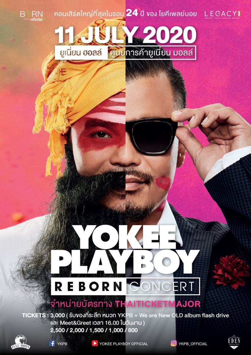 เนื่องด้วยความห่วงใยในผลกระทบที่อาจเกิดจากสถานการณ์ โควิท-19 โยคีเพลย์บอย จึงขอประกาศเลื่อนคอนเสิร์ต Yokee Playboy Reborn Concert จากกำหนดเดิม 14 มี.ค. 63 ไปเป็นวันเสาร์ที่ 11 ก.ค. 63 แทนครับ