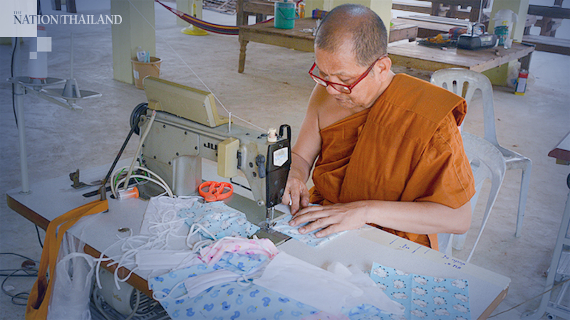 “Facemasks are selling for high prices and they’re hard to come by in rural areas,” he said. “That’s why I started making them for the other monks and the novices, using fabric from old clothes, and I give them away to people who come here to make merit.”