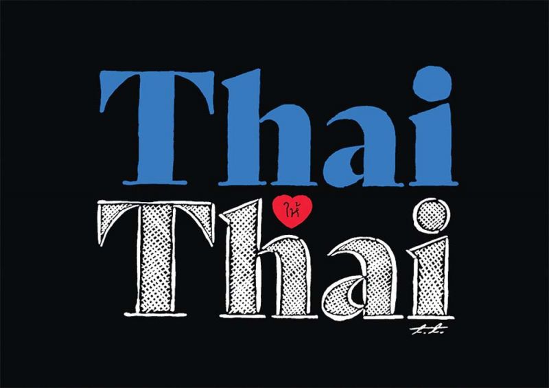 ด้าน ธีรวัฒน์ เฑียรฆประสิทธิ์กล่าวว่า Thai Thaiออกแบบจากความรู้สึกที่อยากให้คนเข้าใจง่าย ไม่ว่าจะเป็นคนจากที่ไหน จึงเลือกใช้ไทโปภาษาอังกฤษว่า Thai Thaiที่ตรงกลางมีหัวใจเขียนคำว่า “ให้” เล็กๆ อยู่ คำว่า Thaiตัวบนระบายสีเต็ม ขณที่ตัวล่างระบายแบบไม่เต็ม สื่อความหมายว่า ไทยให้ไทย โดยที่เรากำลังเติมเต็มคนไทยด้วยกันที่ยังได้รับความช่วยเหลือไม่เต็มที่
