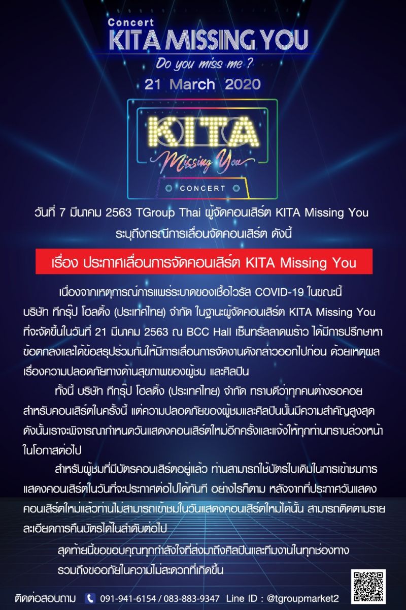 ประกาศเลื่อนการจัดคอนเสิร์ต ‘KITA Missing You’