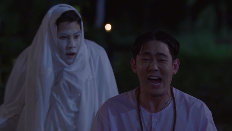เรื่องราวมาถึงฉากที่ นัจ (คริษฐา สังสะโอภาส)ตั้งใจที่จะจัดการ จืด (ศุภณัฐ เฉลิมชัยเจริญกิจ) ที่คิดจะมัดมือชก ขอเธอแต่งงาน นัจ จึงเข้ามาปฏิบัติธรรมที่วัด โดยที่มี จืด ตามมาด้วย แต่งานนี้ ด้วง (กรกฏ ตุ่นแก้ว)ซึ่งร่วมมือกับดร.สันติธร (สันติราษฎร์ กุลนพเกียรติ)ต่างพร้อมใจกันช่วย นัจ จัดการจืด ดร.สันติธร เลยปลอมตัวเป็นผี ตั้งใจจะแกล้งมาหลอกจืด แต่ก่อนที่จะทำให้จืดหลอน ด้วยความที่ชุดของ ดร.สันติธร ยาวมาก เลยทำให้ นัจ เหยียบชายผ้าจนทำเอาทั้งคู่ล้มลงมาทับกัน สร้างซีนหวานโดยไม่ตั้งใจซะนี่!!