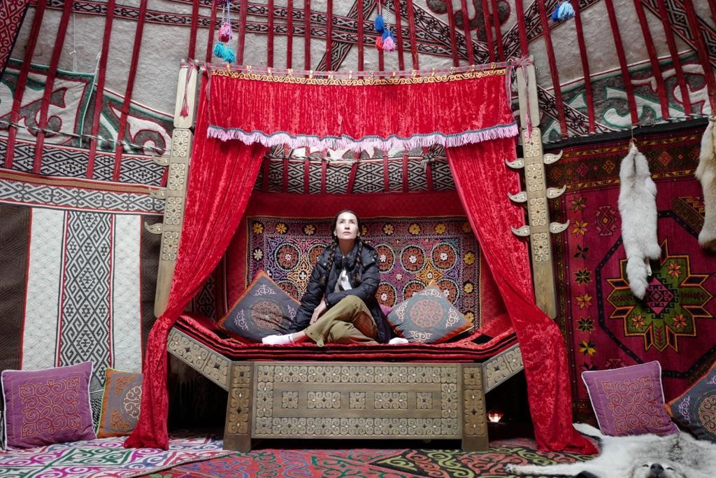 Famous Thai actress Anne Thongprasom is in national Kazakh yurt