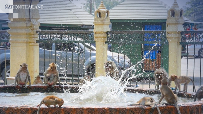 The temperature in Lopburi province touched 40 degrees Celsius today (March 10), hitting people and animals, especially monkeys living near the San Phra Kan Shrine in Muang district.