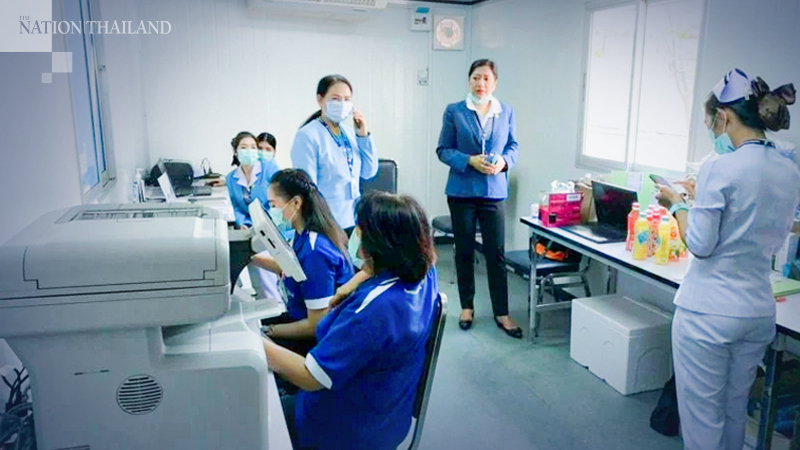 Ramkhaeng Hospital sets up mobile clinic in parking lot for Covid-19 testing