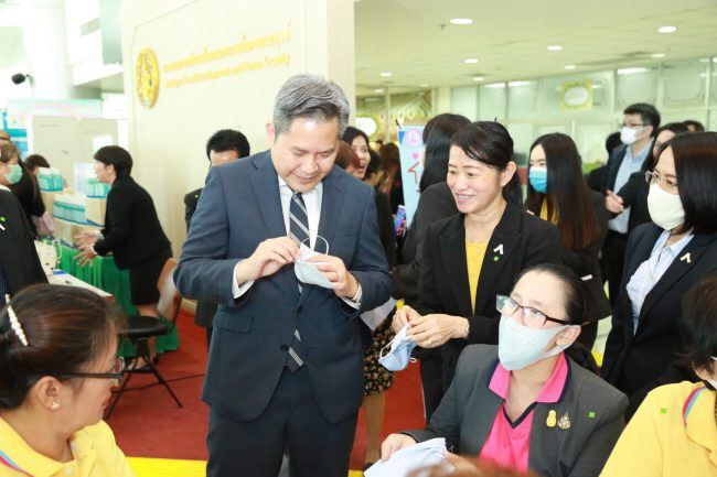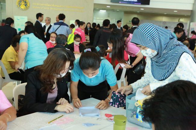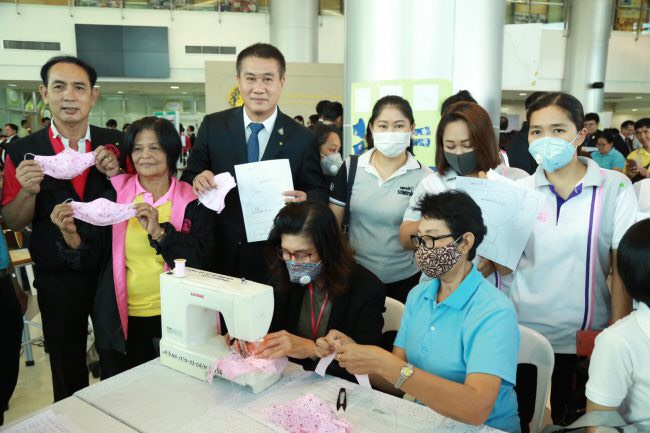 โดยได้เปิดให้อาสาสมัครพัฒนาสังคมและความมั่นคงของมนุษย์ (อพม.) และจิตอาสา ทั้งเด็ก เยาวชน สตรี คนพิการ ผู้สูงอายุ และประชาชนทั่วไป เข้ามามีส่วนร่วมในการทำหน้ากากผ้าที่เย็บด้วยมือ โดยเมื่อทำเสร็จแล้ว สามารถนำกลับบ้านเพื่อให้กับคนในครอบครัว และอีกส่วนหนึ่งจะนำไปแจกจ่ายให้ประชาชนที่ต้องการต่อไป