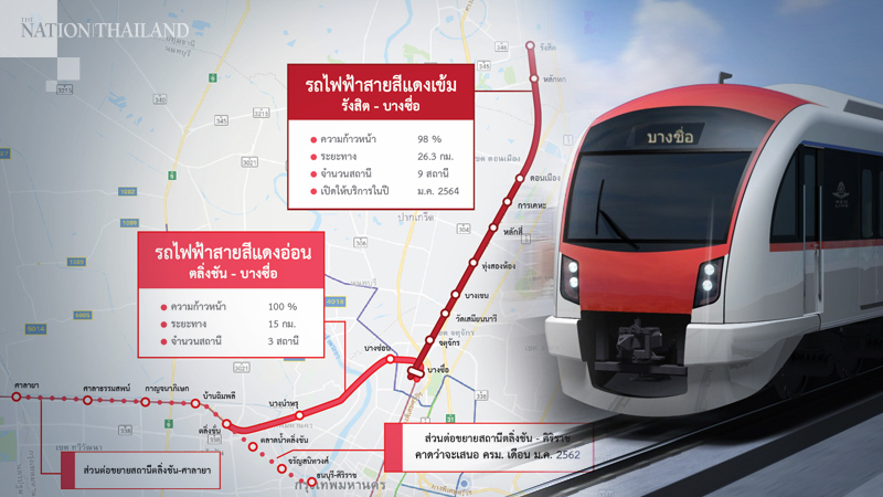 Meanwhile, construction of the Bangsue central station is expected to be completed in June while the Red Line mass transit system’s Bangsue-Rangsit section and Bangsue-Talingchan section with a total of 13 stations will commence commercial operations in January next year. Fares for the two routes will be from Bt15 to Bt50.