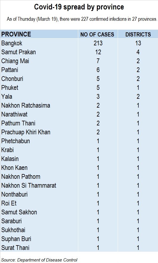 Thailand has 50 new confirmed cases of Covid-19 infection – not 60 as reported by the Health Ministry on Thursday (March 19) – causing the total to be revised to 322.