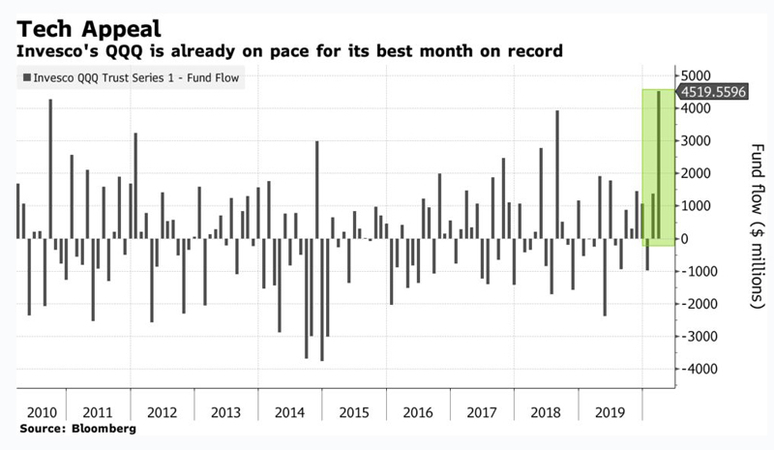 In midst of chaos, Nasdaq ETF gets biggest inflow in two decades