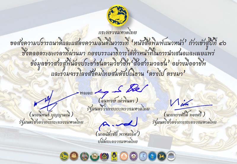 “เนื่องในโอกาสครบรอบ 40 ปี ของหนังสือพิมพ์แนวหน้า