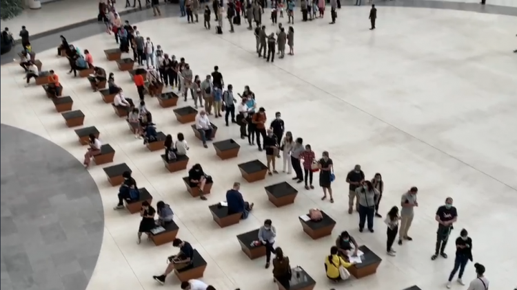 At the Immigration Division 1 office on the second floor of Building B, immigration police separated seats by one metre for foreigners extending their temporary stay permits in the kingdom.