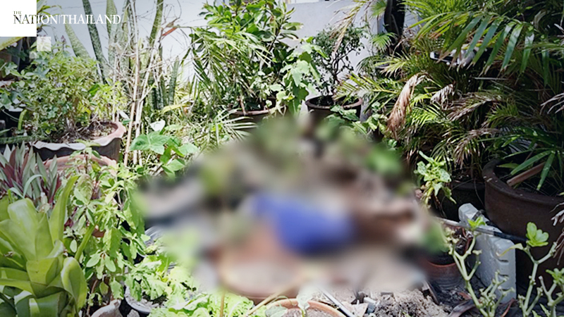 A neighbouring merchant discovered the body while dumping garbage the next morning outside the residential building in Din Daeng district.