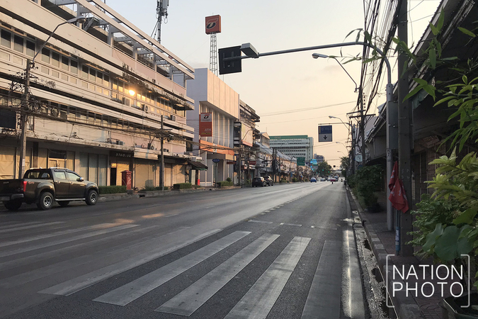 Roads at the Nang Loeng area in Bangkok were deserted on Saturday morning (March 28) after the temporary closure of risky areas was announced to contain the spread of Covid-19.