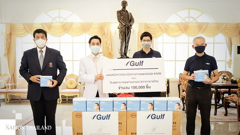 Of these, 50,000 masks will be given to KCMH medical staff, while the remaining 50,000 will be distributed to other hospitals in need to reduce the risk of transmission and protect frontline workers against Covid-19, Sitamon Ratanavadi said on behalf of Gulf chief executive officer Sarath Ratanavadi,