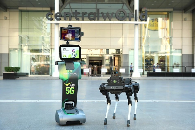 Leading telecom operator Advanced Info Service (AIS) and CentralWorld department store have jointly marshalled two 5G-controlled AIS robots to ensure shoppers’ hygiene and safety at the department store as part of their efforts to further contain the Covid-19 outbreak.