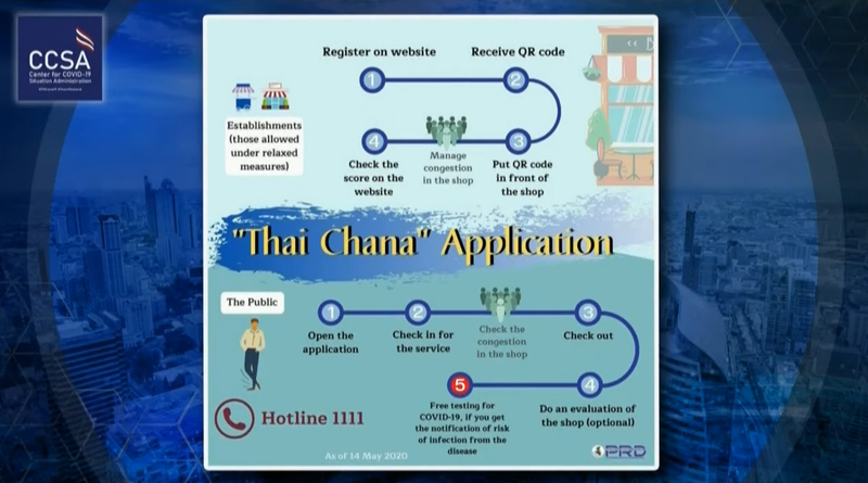People who come to shops, such as restaurants or barbers, have to scan the QR code to enter, which will let them know if the shop is crowded or not. Moreover, ThaiChana can show users available restaurants or venues in wide areas, guiding users’ decision in choosing places to visit, the spokesman added.