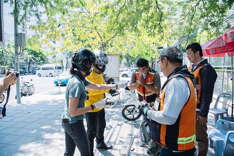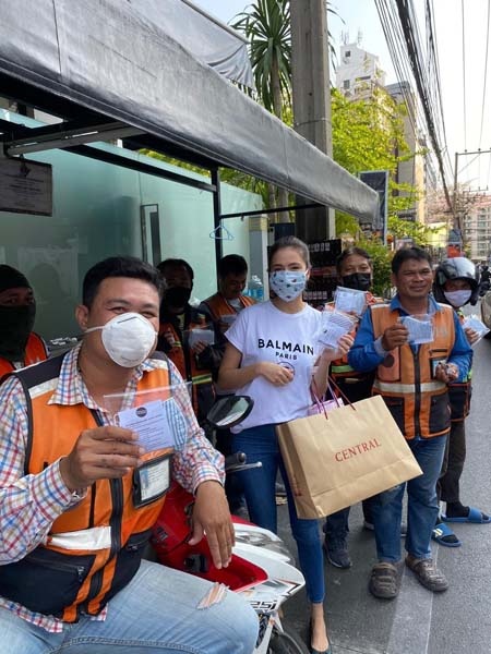 โดยทยา ทีปสุวรรณ ภรรยา ณัฎฐพล ทีปสุวรรณ รัฐมนตรีว่าการกระทรวงศึกษาธิการ (รมว.ศธ.) ได้ขี่มอเตอร์ไซค์นำขบวนเดินสายไปมอบส่วนหนึ่งที่สภากาชาดไทย ซึ่งมีความต้องการหน้ากากสำหรับคนที่มาบริจาคโลหิตแต่ไม่มีหน้ากาก ต่อด้วยเส้นสยาม หัวลำโพง และสุขุมวิท โดยบรรดามอเตอร์ไซค์และแท็กซี่ต่างดีใจและมาขอกันเป็นจำนวนมาก ทำให้บรรดาจิตอาสามีกำลังใจในการสานต่อกิจกรรมนี้ต่อไป