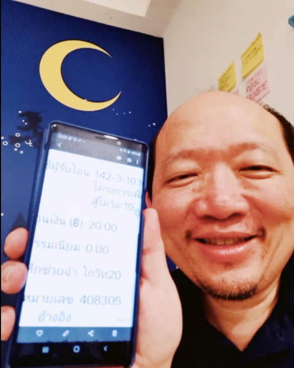 วิธีทำคือ capture หน้าจอที่คุณโอนเงินแล้วลบเลขบัญชีของคุณออก(เพื่อป้องกันมิจฉาชีพ ) และถ่ายรูปของตัวคุณเองกับสลิปนั้น เพื่อแสดงว่าคุณได้ช่วยแล้ว post ภาพของคุณ พร้อมกับโปสเตอร์ของโครงการในโซเชียลของคุณ แล้วชวนเพื่อนอีก 20 คน เหมือนที่เรา post นี้ รับรอง โควิด 19 แพ้ โกวิท 20แน่นอน!!