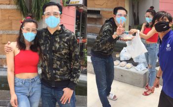 ‘หนุ่ม ศรราม’ควงภรรยาแจกข้าวไข่เจียว