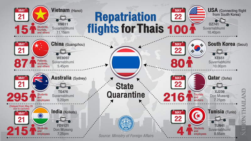 “One hundred from the United States, 80 from South Korea, and four from Tunisia will arrive at Suvarnabhumi Airport at 10.40pm, 10pm, and 8.55am, respectively,” he said.