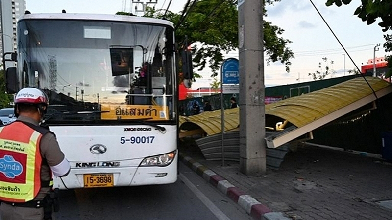 Man injured as bus stop in Bangkok collapses
