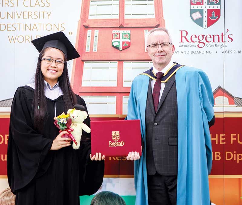 มร.ปีเตอร์ โฮแกน ครูใหญ่โรงเรียนนานาชาติรีเจ้นท์กรุงเทพฯ หนึ่งในแบบฉบับโรงเรียนนานาชาติที่ดีที่สุดในประเทศไทย ให้เกียรติเดินทางไปมอบประกาศนียบัตรให้แก่นักเรียนระดับชั้นเยียร์ 13 ที่จบหลักสูตร IB ถึงบ้านของนักเรียนซึ่งอยู่ในกรุงเทพฯ ถือเป็น New Normal ที่สร้างความประทับใจให้แก่ผู้ปกครองและนักเรียนเป็นอย่างมาก