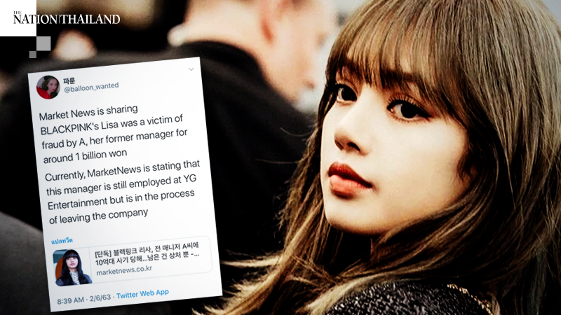 South Korea’s YG Entertainment confirmed that BLACKPINK’s band member Lalisa ‘Lisa’ Manoban has been swindled out of 1 billion won (about Bt25 million) by her former manager.