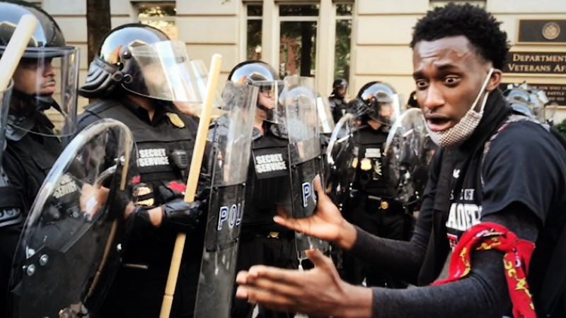 “Officer, do you agree with us?” Leo West, a white 20-year-old college student from suburban Takoma Park, Md., wearing a Black Lives Matter face mask, asked an African American officer named P.D. Harris.