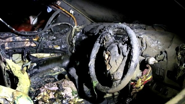 The completely burned body of the driver, Chantorn Manmor, was in the driver’s seat.