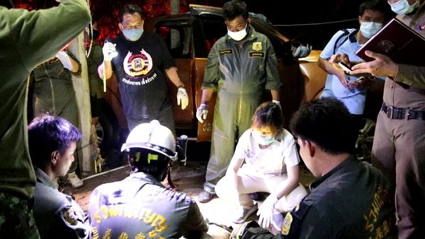 The completely burned body of the driver, Chantorn Manmor, was in the driver’s seat.