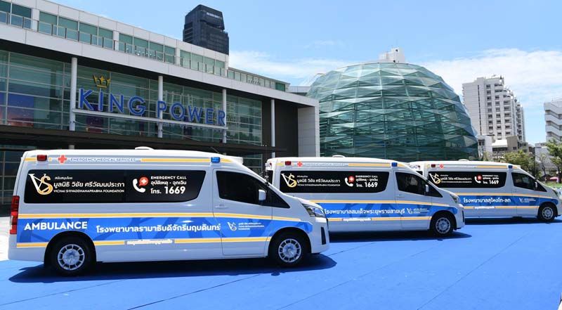 มูลนิธิ วิชัย ศรีวัฒนประภา สนับสนุนงานด้านสาธารณสุขคืนสู่สังคมส่งมอบรถพยาบาลฉุกเฉิน ให้โรงพยาบาลที่ขาดแคลน ใช้ปฏิบัติการช่วยชีวิตผู้ป่วยให้ได้รับการรักษาอย่างทันท่วงทีเพิ่มโอกาสรอดชีวิตผู้ป่วย โดย มูลนิธิ วิชัย ศรีวัฒนประภา ได้ทำการส่งมอบรถพยาบาลฉุกเฉิน จำนวน 3 คัน ให้แก่โรงพยาบาล 3 แห่ง ได้แก่ โรงพยาบาลสมเด็จพระยุพราชสายบุรี จ.ปัตตานี, โรงพยาบาลสุไหงโก-ลก จ.นราธิวาส ซึ่งเป็นโรงพยาบาลในจังหวัดชายแดนภาคใต้ ระดับอำเภอที่มีขนาดเล็กห่างไกลจากตัวเมือง มีปริมาณประชากรในพื้นที่ที่ต้องให้การดูแลรักษาเป็นจำนวนมาก แต่มีรถพยาบาลไม่เพียงพอ และโรงพยาบาลรามาธิบดีจักรีนฤบดินทร์ จ.สมุทรปราการ ซึ่งสร้างใหม่มีความจำเป็นต้องมีรถพยาบาลเพื่อใช้ในการรับส่งและดูแลผู้ป่วยที่มีจำนวนเพิ่มสูงขึ้น ดังนั้นมูลนิธิวิชัย ศรีวัฒนประภา โดย เอมอร ศรีวัฒนประภา ประธานกรรมการ พร้อมด้วย คณะกรรมการมูลนิธิฯ อัยยวัฒน์-วรมาศ-อภิเชษฐ์-อรุณรุ่ง ศรีวัฒนประภา และ รวิ อิทธิระวิวงศ์ ร่วมกันทำพิธีส่งมอบรถพยาบาลฉุกเฉิน ณ คิง เพาเวอร์รางน้ำ เมื่อวันอังคารที่ 2 มิถุนายนที่ผ่านมาโดยมีผู้บริหารของทั้ง 3 โรงพยาบาลเป็นผู้แทนรับมอบ