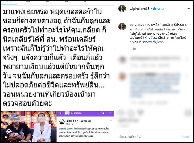 6. ไม่มีใครทำร้ายมึงหลอก มีแต่มึงทำตัวมึงเองและทำร้ายทุกคนแม้กระทั่งลูกมึงเอง ทุเรศ แม่หัวxxx