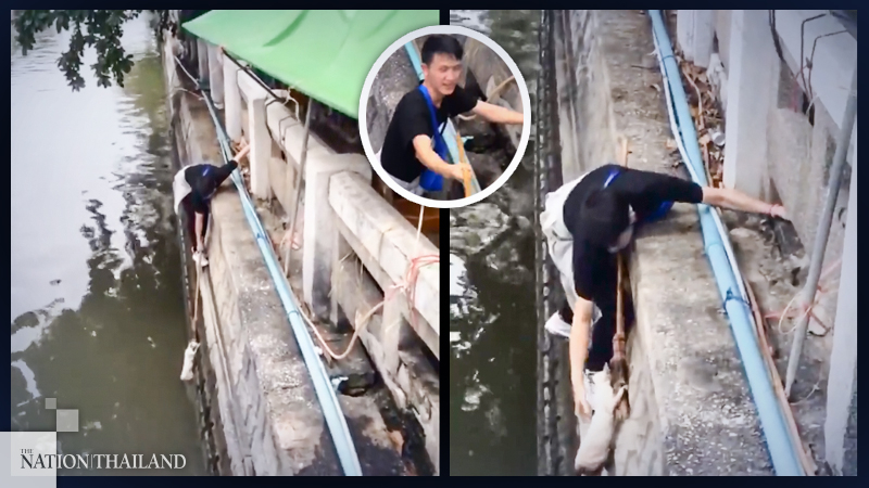By The NationA video clip of a Thai man helping a cat to escape a watery death has gone viral on the popular TikTok app, drawing more than one million views.