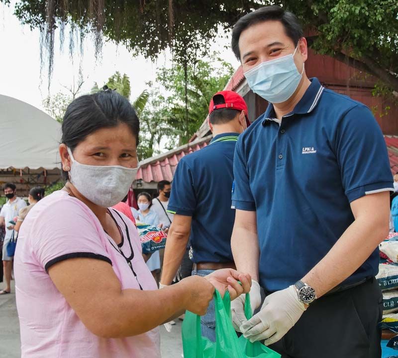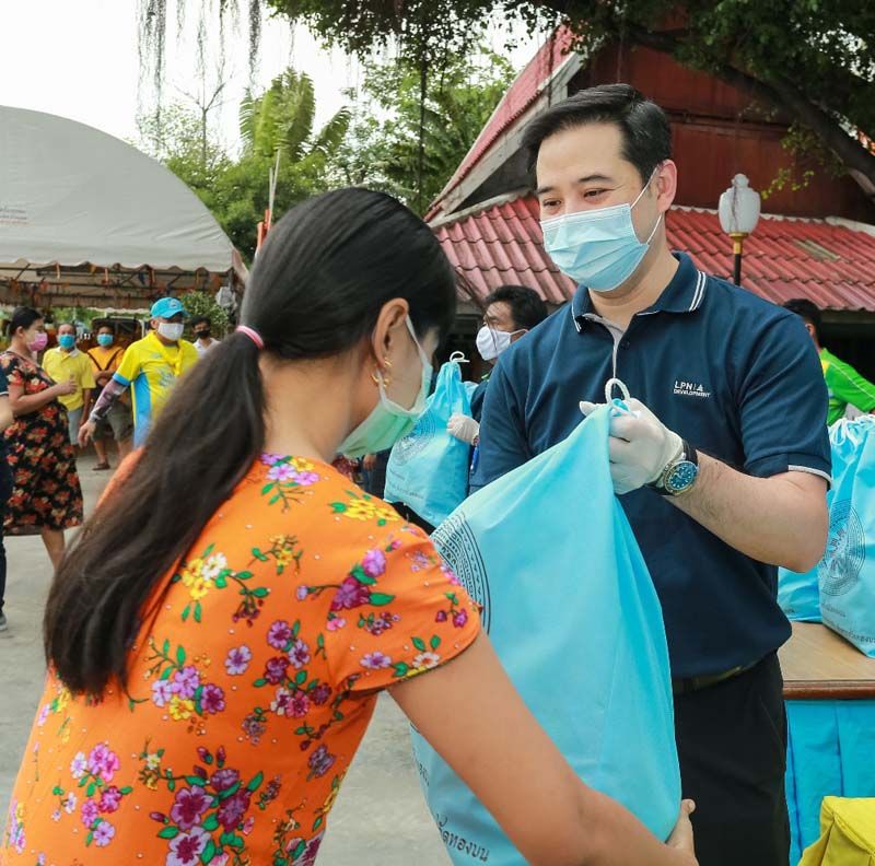 LPN ไม่ได้มุ่งสร้างผลกำไรสูงสุดให้แก่ธุรกิจเพียงอย่างเดียว แต่ยังเน้นการตอบแทนกลับคืนสู่สังคม โดยมุ่งหวังเป็นส่วนหนึ่งของจุดเริ่มต้นที่ร่วมสร้างและผลักดันสังคมโดยรวมให้แข็งแกร่งขึ้น ทั้งยังเป็นการสร้างจิตสำนึกแก่พนักงานในการทำประโยชน์เพื่อผู้อื่นให้ขยายวงกว้างต่อไป ซึ่งกิจกรรมมอบถุงยังชีพ ภายใต้ “LPN ร่วมใจ ห่วงใยเพื่อนบ้าน” ได้รับการรวมพลังจากพนักงานที่ต่างสับเปลี่ยนหมุนเวียนไปมอบถุงยังชีพในเขตต่างๆ จากแนวทางการสนับสนุนของบริษัทที่ทำให้เกิดการมีส่วนร่วมของพนักงาน เพื่อส่งเสริมและปลูกฝังจิตสำนึกในการทำความดี เป็นกิจกรรมที่แสดงถึงการแบ่งปัน (Sharing) จาก LPN ไปสู่สังคมภายนอก โดยภายในถุงยังชีพได้บรรจุสิ่งจำเป็นในการดำรงชีพ ได้แก่ ข้าวสาร อาหารแห้งและอื่นๆ นอกจากนี้ บริษัทยังได้มอบ Face Shield แก่โรงพยาบาลที่ขาดแคลน และกทม.สำหรับพนักงานจัดขนมูลฝอย จำนวน 20,000 ชิ้น รวมถึง ชุมชนลุมพินียังมีการจัดตั้งตู้ปันสุขแก่ผู้ได้รับความเดือดร้อนครั้งนี้ด้วย