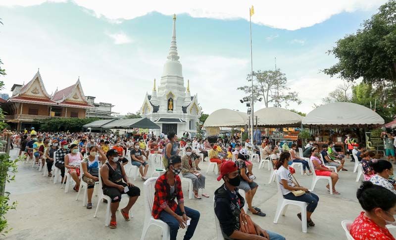 สุรวุฒิ สุขเจริญสิน และเจ้าหน้าที่ในกิจกรรม “LPN ร่วมใจ ห่วงใยเพื่อนบ้าน” มอบถุงยังชีพให้แก่ประชาชนผู้ได้รับความเดือดร้อนจากพิษของไวรัสโควิด-19