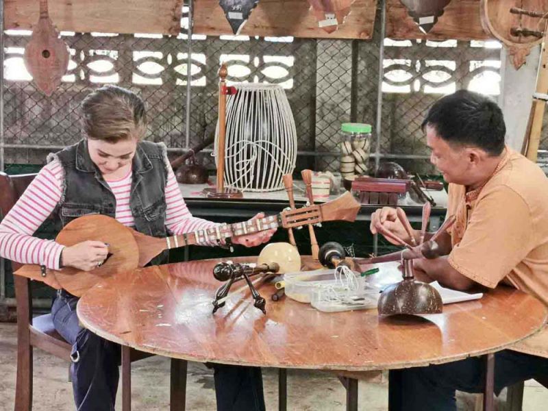มาต่อที่เมืองรถม้า จ.ลำปาง กับเรื่องราวของ “สล่าตุ้ย – สิทธิชัย เตชะลืม” ที่นอกจากเขาจะเล่นเครื่องดนตรีพื้นบ้านได้แล้ว เขายังเป็นผู้ประดิษฐ์ และรับซ่อมเครื่องดนตรีพื้นบ้านอีกด้วย เส้นทางเดินที่กว่าจะมาเป็นสล่าเครื่องดนตรีได้นั้นไม่ได้ง่ายเลย เขาต้องเรียนรู้วิธีด้วยตัวเอง คิดค้นเครื่องมือขึ้นใหม่ และกว่าคนจะยอมรับในฝีมือ เขาใช้เวลามากกว่า 10 ปี และที่สำคัญเขายังสอนเล่นดนตรี วิธีการทำและซ่อมเครื่องดนตรีให้กับเด็กๆ อีกด้วย