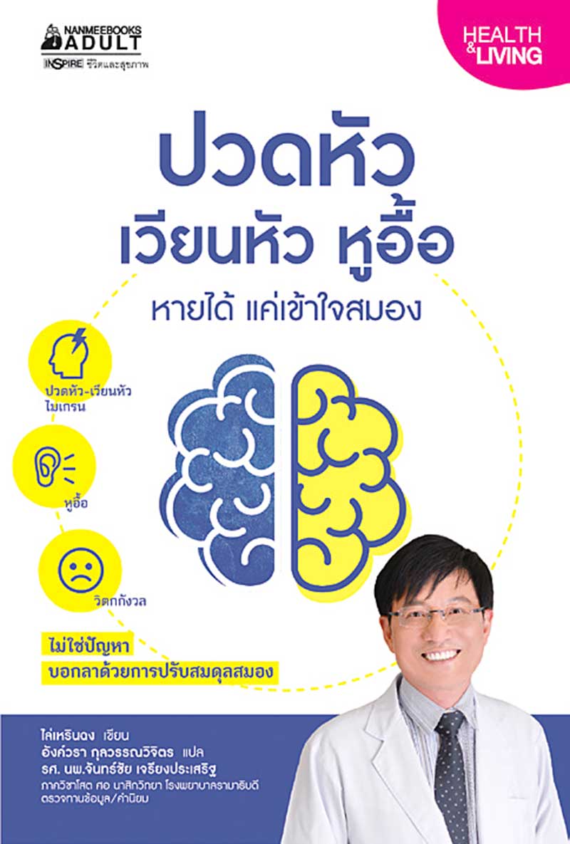 นอกจากความอ่อนล้าที่ปรากฏเป็นอาการปวดเมื่อยตามเนื้อตัวแล้ว อาการปวดหัว วิงเวียนศีรษะ ก็เป็นสัญญาณของโรคที่พบบ่อยของคนยุคใหม่ หนังสือที่มีชื่อว่า ปวดหัวเวียนหัว หูอื้อ หายได้ แค่เข้าใจสมอง เขียนโดย นพ.ไล่เหรินฉง แพทย์ชื่อดังด้านหู คอ จมูก จากไต้หวัน ภายในเล่มนี้ได้อธิบายสาเหตุของอาการปวดหัวแต่ละแบบให้ผู้อ่านจำแนกได้ว่า แท้จริงแล้วเราปวดหัวเพราะเป็นไมเกรน พักผ่อนไม่เพียงพอ หรือมีปัจจัยอื่นๆ เพิ่มเติมเข้ามากันแน่ ทั้งนี้ ก็เพื่อให้รู้วิธีรักษาอาการอย่างถูกต้องตามหลักการแพทย์ เลิกพฤติกรรมซื้อยามากินเองโดยขาดความรู้ความเข้าใจและอาจเป็นอันตราย แล้วเปลี่ยนมาป้องกันไม่ให้ตนเองกลับมามีอาการวิงเวียน หรือปวดศีรษะซ้ำเพราะเราอาจเลี่ยงปัจจัยที่ทำให้มีอาการดังกล่าวได้ตั้งแต่ต้น