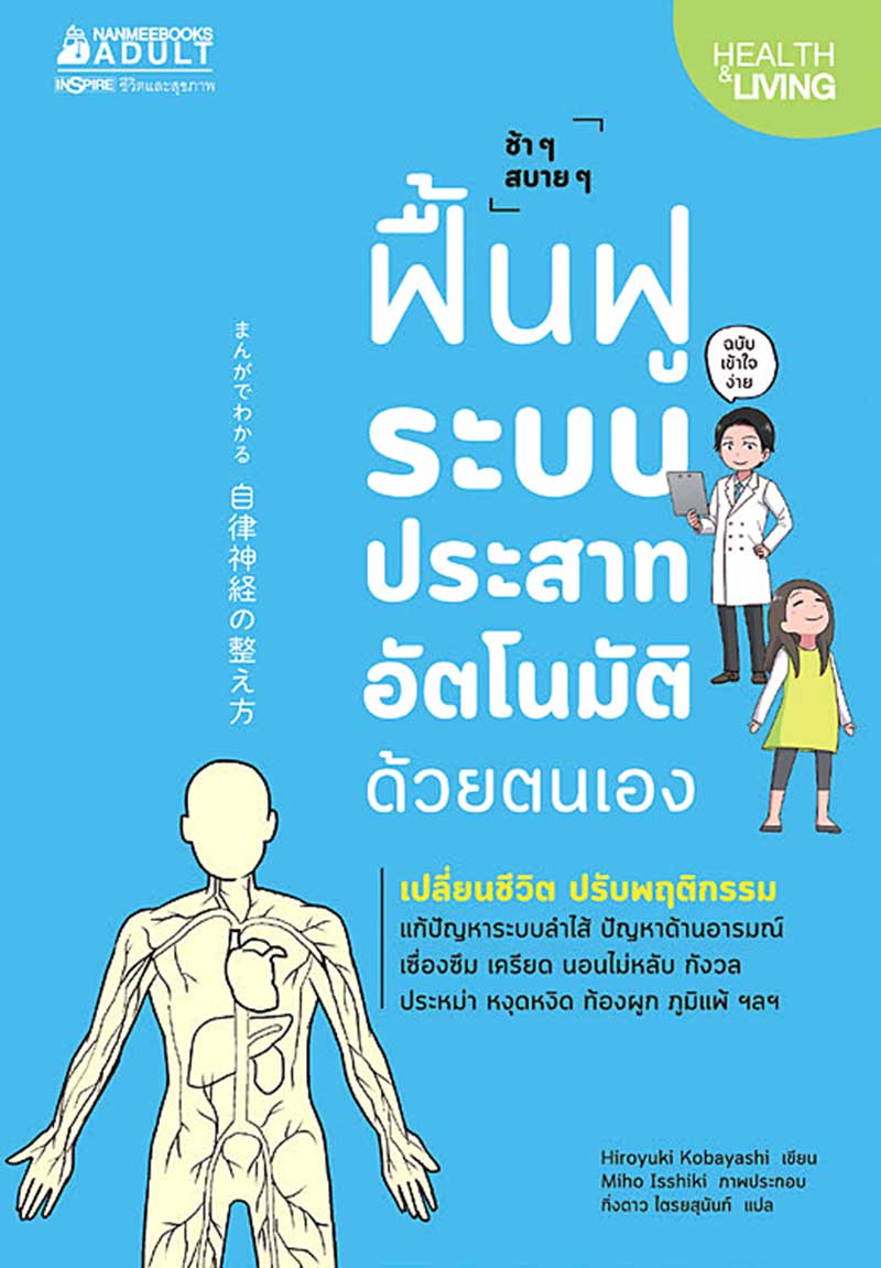 หนังสืออีกเล่มที่ช่วยเสริมความเข้าใจเกี่ยวกับระบบประสาทอัตโนมัติให้ผู้อ่านได้อย่างดี คือ ฟื้นฟูระบบประสาทอัตโนมัติด้วยตนเอง ของ ดร.ฮิโระยุกิ โคะบะยะชิ แห่งคณะแพทยศาสตร์ มหาวิทยาลัยจุนเท็นโด ที่เล่าความรู้เกี่ยวกับการดูแลสุขภาพผ่านตัวการ์ตูนมากอารมณ์ขันและฉายภาพชีวิตประจำวันที่ใครหลายๆ ต้องเคยมีประสบการณ์ร่วมกันมาบ้าง ก่อนจะแนะนำเทคนิคปรับพฤติกรรมให้ระบบประสาทอัตโนมัติกลับมาทำงานได้อย่างมีประสิทธิภาพ
