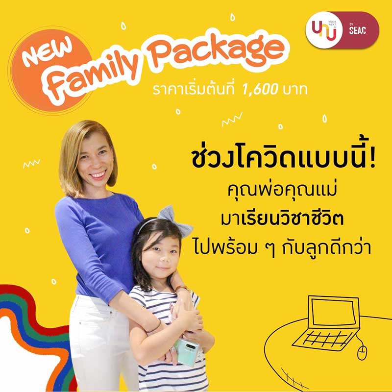 ทั้งนี้ ผลจากการใช้ชีวิตแบบ New Normal เนื่องจาก การแพร่ระบาดโควิด-19ที่ผ่านมา ส่งผลทางตรงต่อการเรียนของเด็กและเยาวชนที่ต้องปรับมาเป็นออนไลน์ รวมถึงส่งผลทางอ้อมต่อผู้ปกครองที่ต้องเข้ามามีบทบาทเสริมในการกระตุ้นให้เกิดการเรียนรู้ตามหลักสูตรวิชาการพร้อมทั้งเสริมด้วยกิจกรรมต่างๆ ทำให้เกิดความเครียดในครอบครัว พ่อแม่ยิ่งจำเป็นต้องเข้าใจและทันต่อความคิดและมุมมองของเด็กในยุคปัจจุบันมากขึ้น SEAC มองเห็นปัญหานี้ จึงได้จัดทำ Family Package ครั้งแรกกับแพ็กเกจการเรียน “วิชาชีวิต” ที่ทุกคนในครอบครัวสามารถ เรียนร่วมกันได้ ผสานหลักสูตรของ Your NextU และ YourNextU YOUNG เข้าด้วยกันเพื่อสร้างความรู้ ความเข้าใจสร้างบทสนทนากระชับความสัมพันธ์ เพิ่มสมการแห่งความสุขในครอบครัวผ่านการเรียนรู้รูปแบบ Virtual Classroom ห้องเรียนเสมือนจริง กับเทรนเนอร์ที่ได้รับการรับรองมาตรฐาน มีประสบการณ์และความเชี่ยวชาญเฉพาะด้านมากมาย